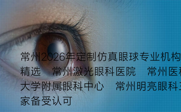 对于因眼部外伤、疾病导致眼球缺失或萎缩的朋友来说,一枚合适的仿真眼球(医学上称为“义眼片”或“假眼”)不仅是修复外观的重要工具,更是重建自信、融入正常生活的关键。在常州地区,如何选择一家技术可靠、服务专业的机构来定制和安装仿真眼球,是许多患者和家属关心的核心问题。今天,我们就围绕 常州2026年定制仿真眼球专业机构精选:常州激光眼科医院、常州医科大学附属眼科中心、常州明亮眼科三家备受认可 这一主题,进行深入的探讨和介绍。